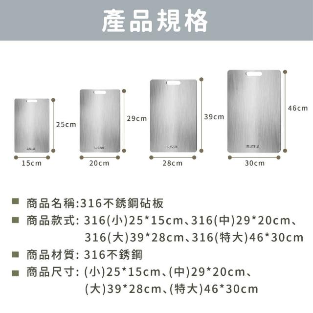 Wing不鏽鋼砧板-46*30cm切菜板 抗菌砧板 316不鏽鋼砧板