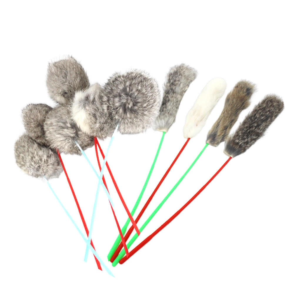 ~旺生活 寵物wanglife~兔毛逗貓棒 兔毛條/兔毛球 逗貓杆 逗貓玩具1入(貓玩具、逗貓棒、兔毛逗貓棒)