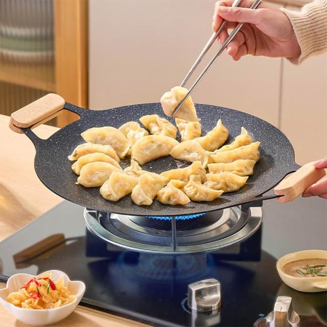 麥飯石不沾烤盤 38cm(送收納袋 麥飯石韓式不沾烤盤 露營烤盤 月亮烤盤 燒烤盤 卡式爐烤盤 烤肉盤 煎烤盤)