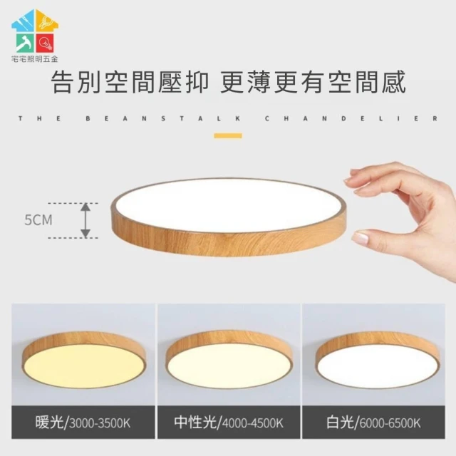 超薄40cm原木LED吸頂燈(三色溫調節 無極調光 附遙控器)