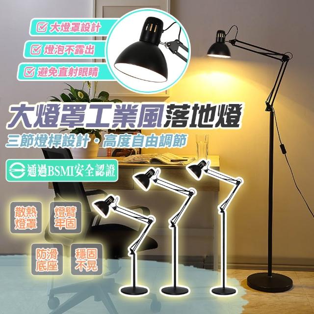 大燈罩工業風落地燈 立燈 植物燈架 多角度調節 E27 麻將燈 客廳燈 沙發燈 製圖燈 工作燈 美甲燈