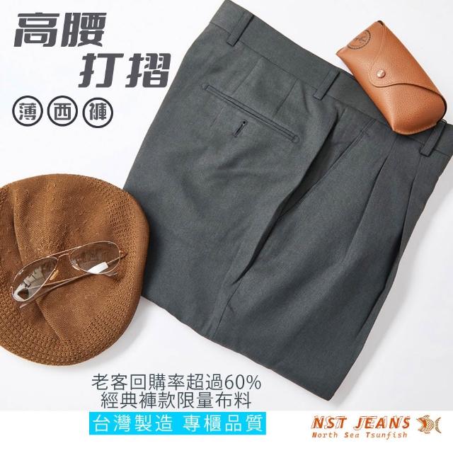 NST JEANS侘寂灰 羊毛雙打摺西裝褲 夏季薄款 台灣製 大尺碼 中老年男(中高腰) 001-7290