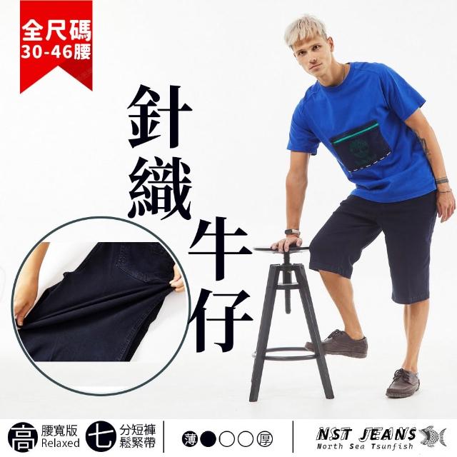 NST JEANS彈力針織牛仔 男款七分短褲 特大尺碼 台灣製 專櫃品質(中高腰寬版 鬆緊帶) 005-26367