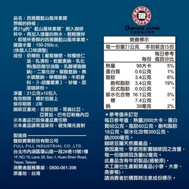 西雅圖藍山風味拿鐵咖啡 有糖 21g(50入/100入)(袋裝/藍山/有糖/咖啡/即溶)