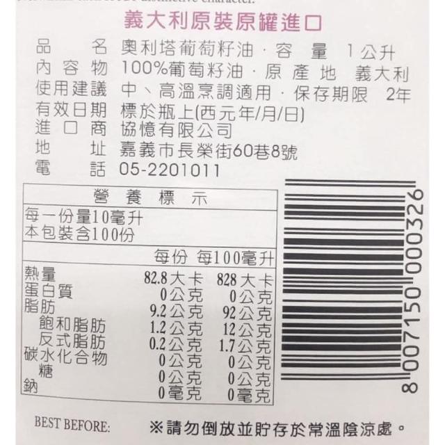 Olitalia 奧利塔Olitalia 奧利塔葡萄籽油-1000mlx2瓶(天然新鮮葡萄壓榨而成)