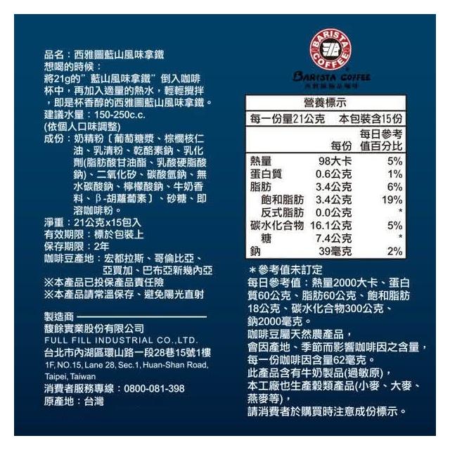 西雅圖藍山風味拿鐵三合一咖啡-21gx50入(袋裝/即溶/拿鐵/咖啡/有糖)
