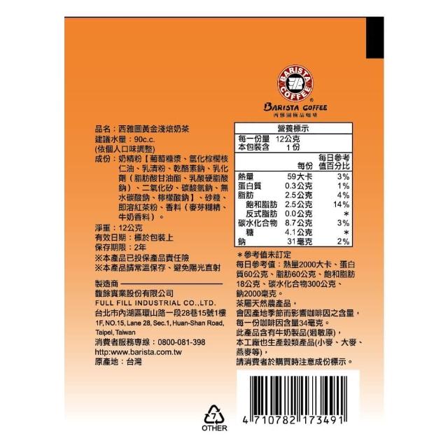 西雅圖黃金淺焙奶茶 12gx10包_袋裝