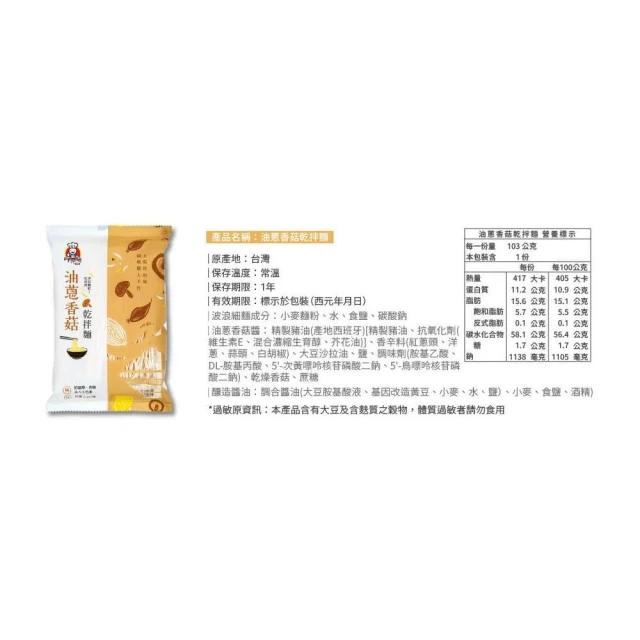 呷什麵油蔥香菇乾拌麵 3入組(油蔥麵 拌麵 快煮麵 乾麵 古早味)