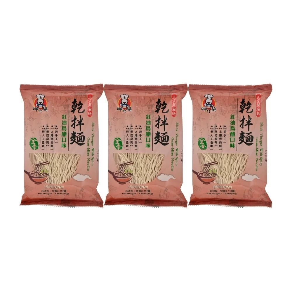 呷什麵紅油烏醋拌麵 3入組(傻瓜乾麵 烏醋麵 乾拌麵 快煮麵 關廟麵 細麵 素食)