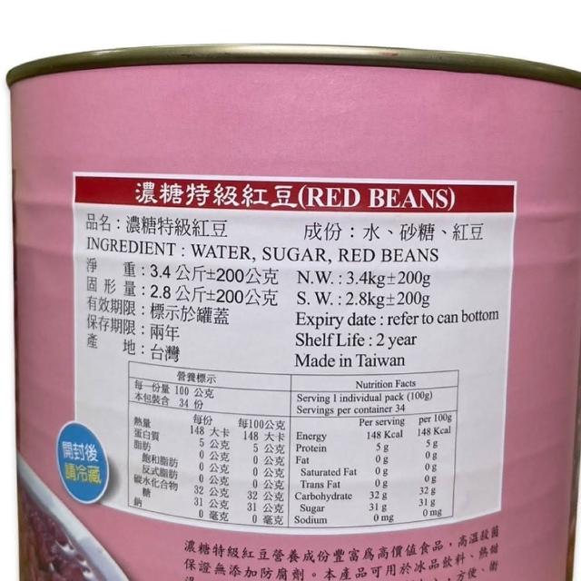 紅豆罐 大湖 3.4公斤(紅豆 即時紅豆 熟紅豆罐頭)