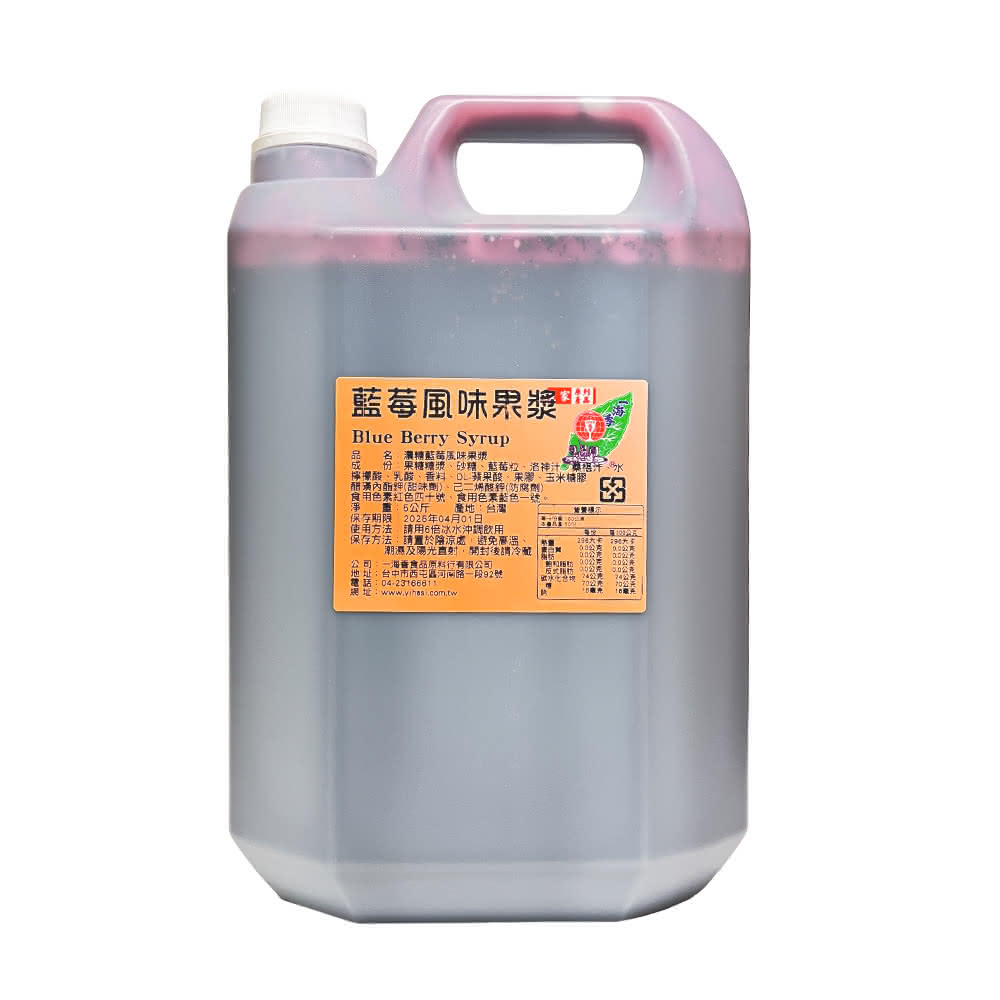 藍莓風味果漿 5公斤x1罐(藍莓汁 藍莓濃縮果汁 藍莓糖漿 藍莓濃縮汁 大罐 手搖飲 營業用 沖泡飲 氣泡水糖漿)