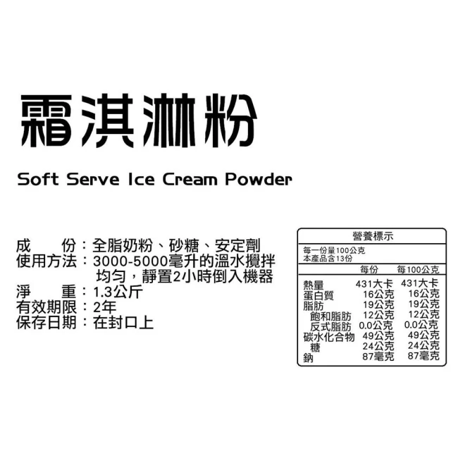 霜淇淋粉 1.3公斤x1包 (霜淇淋原料 霜淇淋基底粉 牛奶口味 原味)