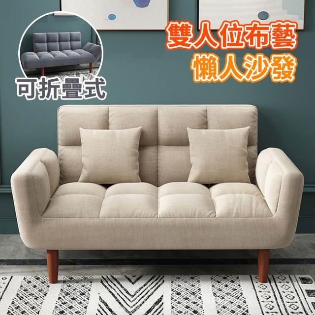 木鈺堂雙人布藝沙發 臥室休閒小沙發榻榻米 可折疊沙發床 懶人沙發椅(布套可拆洗 附兩個抱枕)