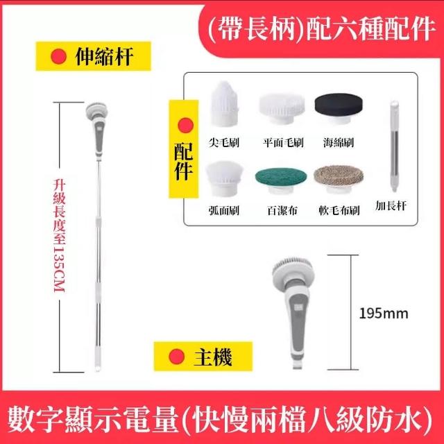 RTAKO多功能電動清潔刷 伸縮長杆 馬桶刷 浴室清潔刷 牆面清洗 多種刷頭