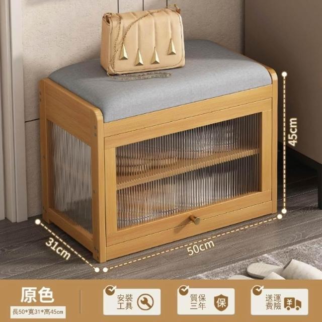木鈺堂現貨速發 簡約楠竹可坐式換鞋凳 50CM 入門儲物鞋櫃 穿鞋椅櫃 收納鞋凳 軟包凳 穿鞋凳 收納凳 換鞋凳