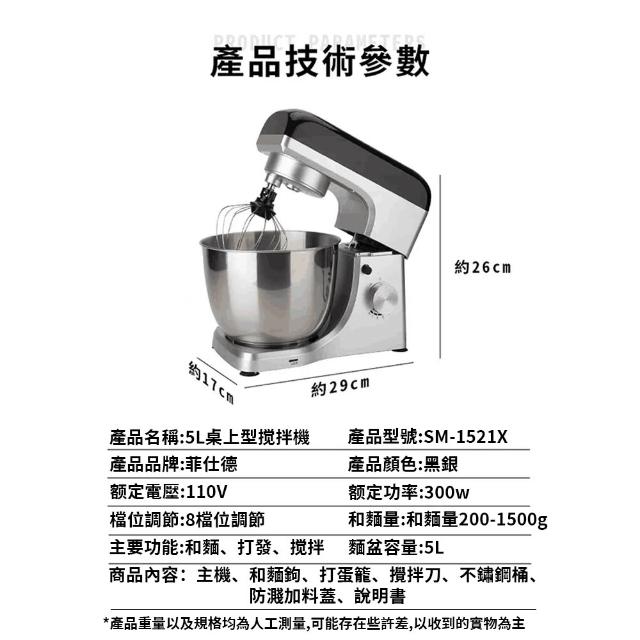 Felsted 菲仕德多功能5L桌上型攪拌機 烘焙專用 揉麵機 麵團機 和麵機 打蛋機 現貨速發/一年保固