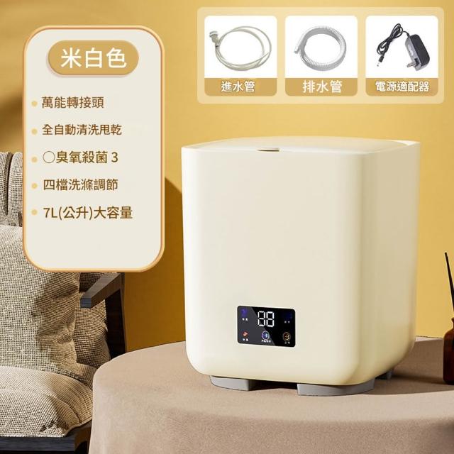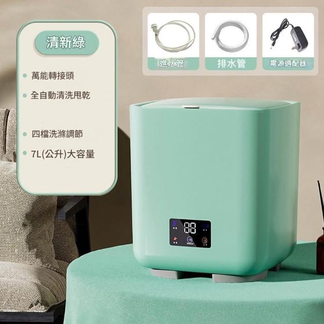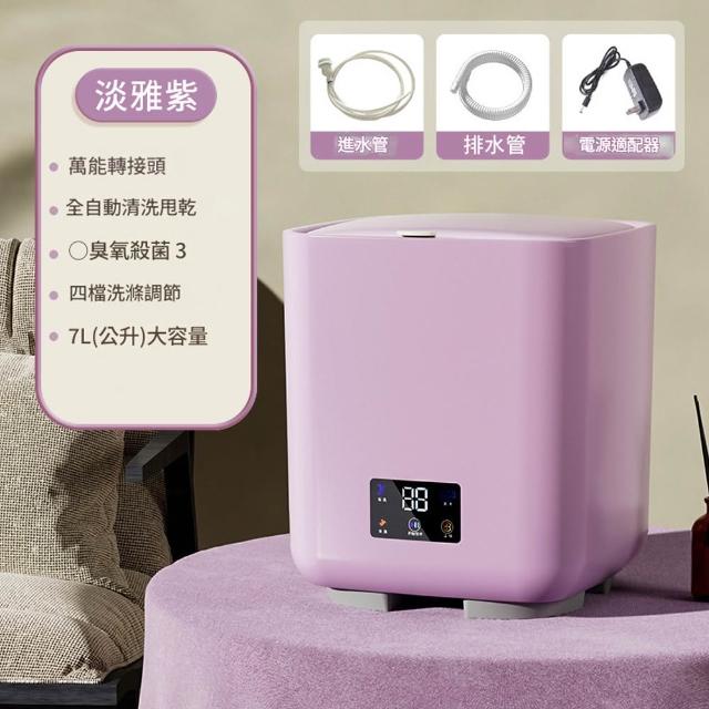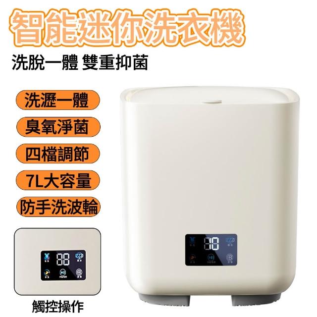 全自動迷你洗衣機 7L大容量 洗脫一體 臭氧殺菌 銀離子/藍光抑菌 附進出水管