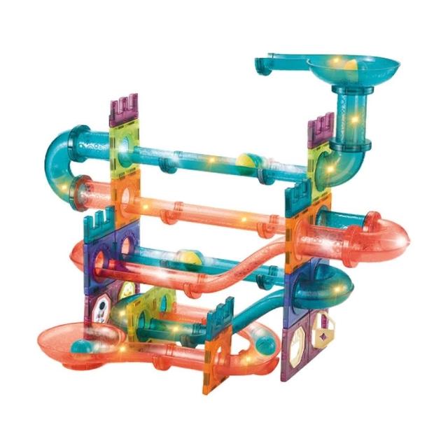 JoyBaby磁鐵積木 燈光軌道積木 磁力片滾珠軌道玩具(益智拼裝玩具/DIY玩具)