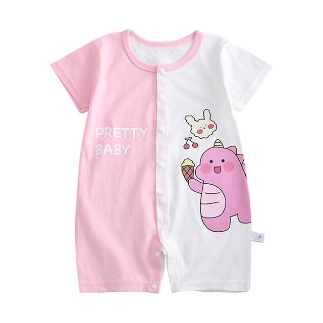 JoyBaby春夏童裝 短袖包屁衣 卡通肩扣薄款連身衣 粉+白