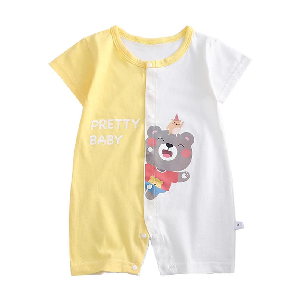 JoyBaby春夏童裝 短袖包屁衣 卡通肩扣薄款連身衣 黃+白