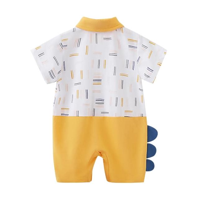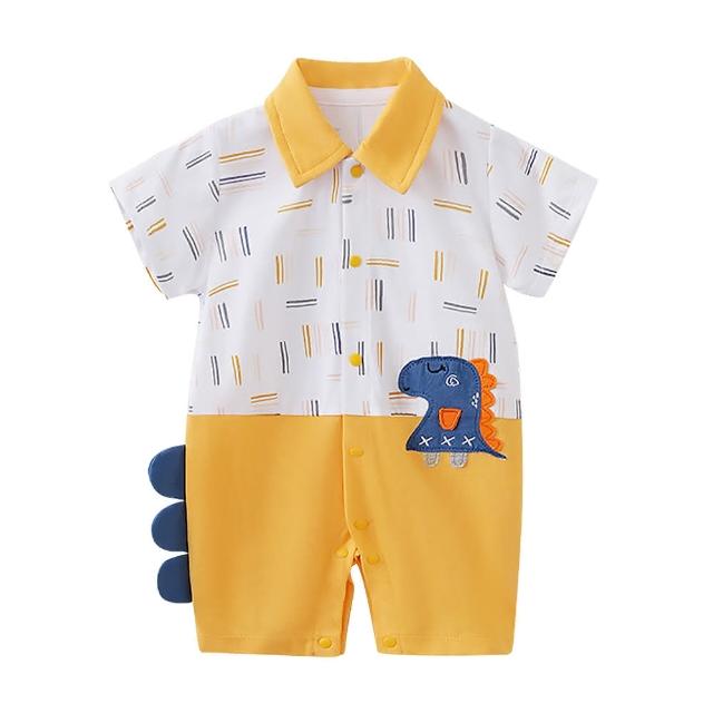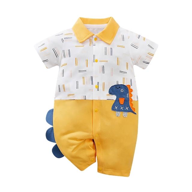 JoyBaby童裝 恐龍深黃棉質短袖包屁衣 短袖嬰兒服 童衣 連身衣