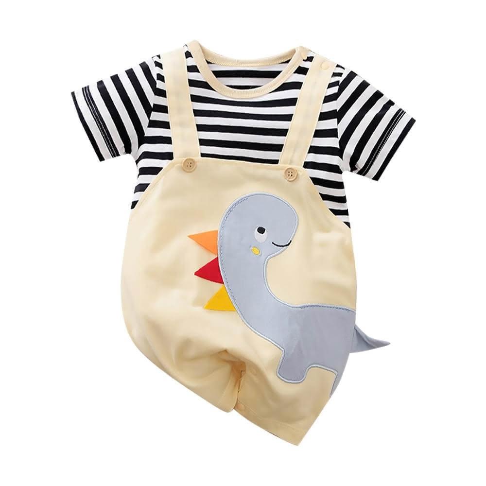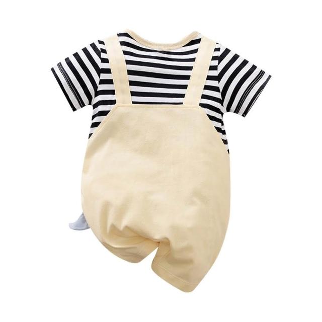 JoyBaby童裝 灰藍恐龍款棉質短袖包屁衣 短袖嬰兒服 童衣 連身衣