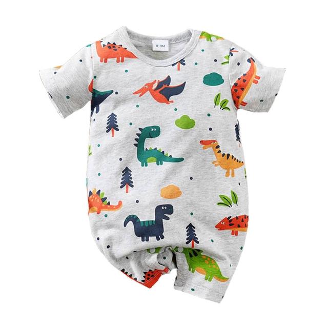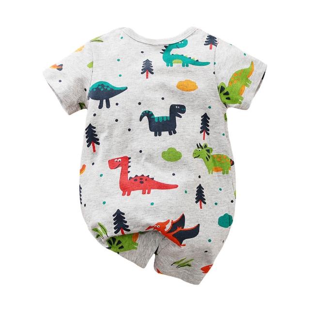 JoyBaby童裝 麻灰恐龍款棉質短袖包屁衣 短袖嬰兒服 童衣 連身衣