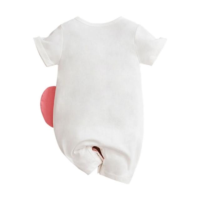 JoyBaby童裝 白底粉象款棉質短袖包屁衣 短袖嬰兒服 童衣 連身衣