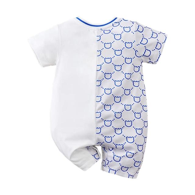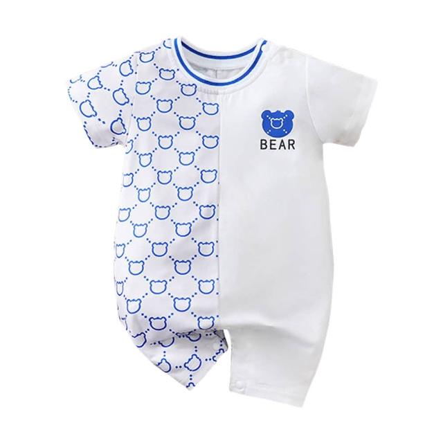 JoyBaby童裝 白底藍熊款棉質短袖包屁衣 短袖嬰兒服 童衣 連身衣