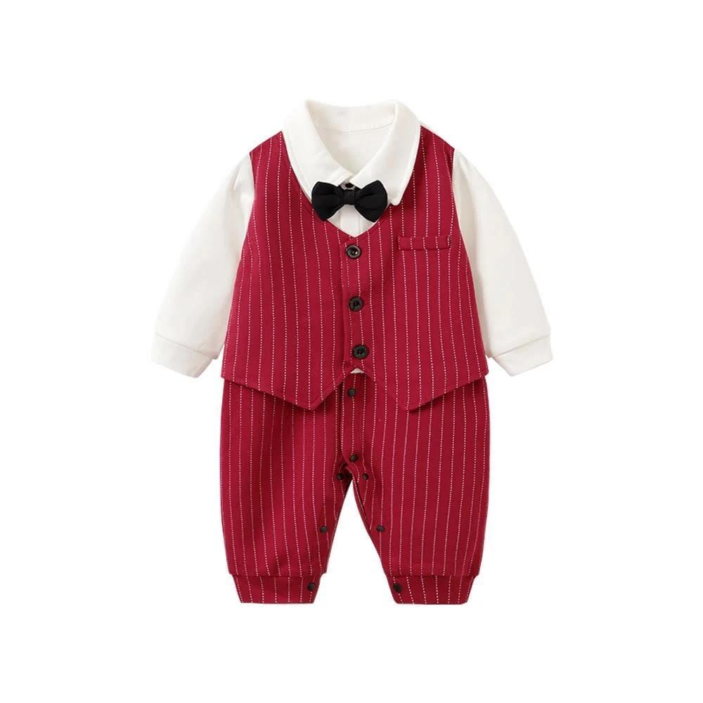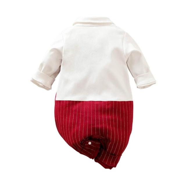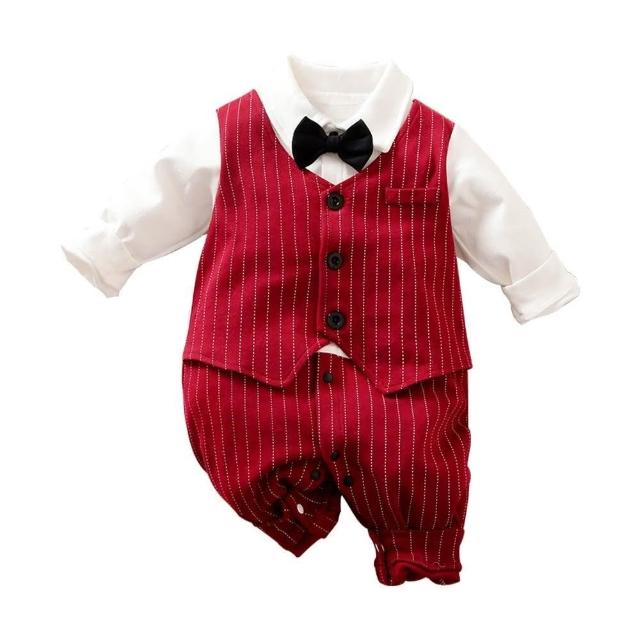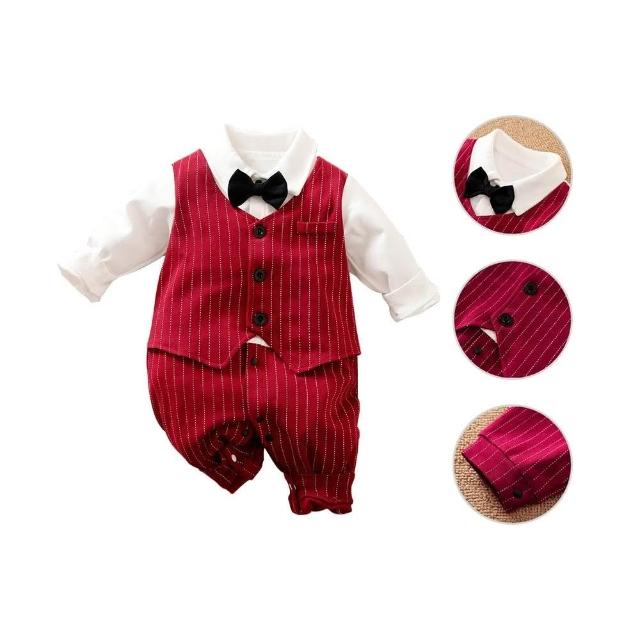 JoyBaby長袖連身衣 寶寶西裝 長袖包屁衣 酒紅紳士西裝包屁衣 新生兒爬服 禮服