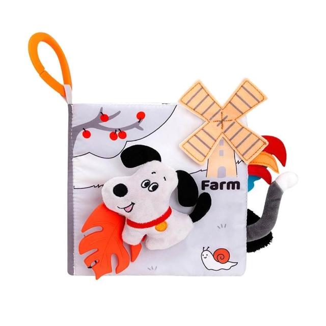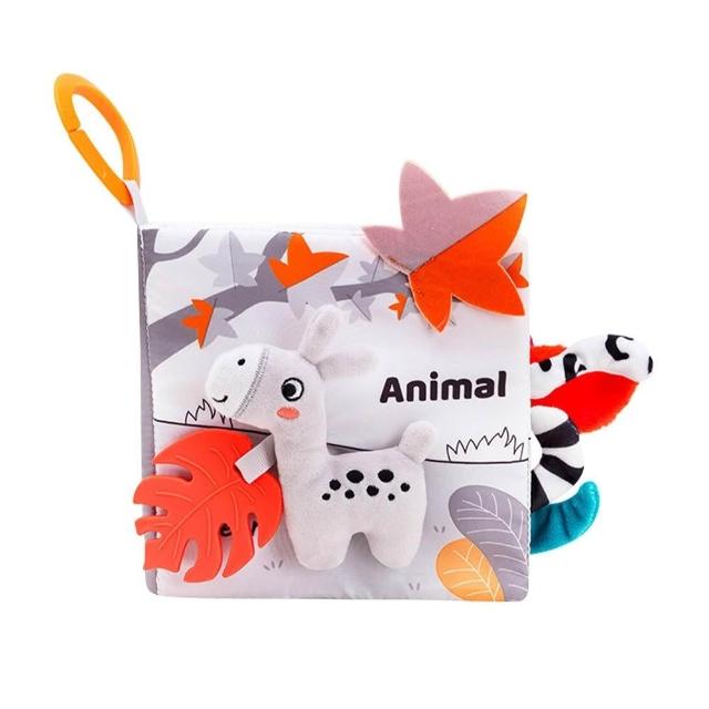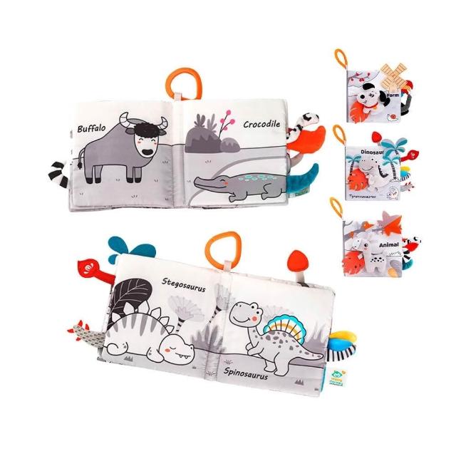 JoyBaby寶寶布書 立體尾巴觸覺認知學習書 動物英文黑白啟蒙認知書 學習書