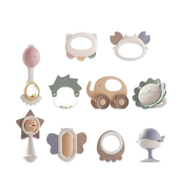 JoyBaby雪倫小舖 手搖鈴 固齒器 10入新生兒安撫玩具組 彌月搖鈴禮盒 聲響安撫玩