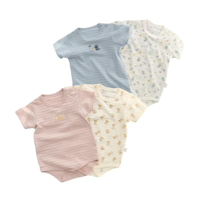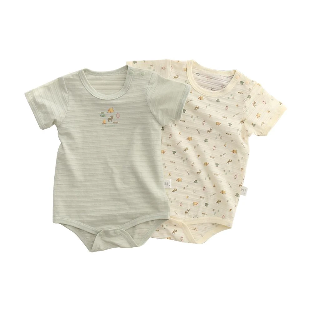 JoyBaby日系純棉短袖包屁衣 2入寶寶純棉連身衣 春夏肩扣短袖睡衣 短袖包屁衣