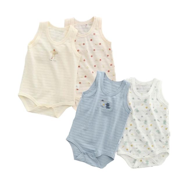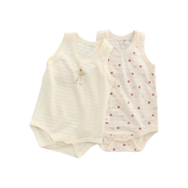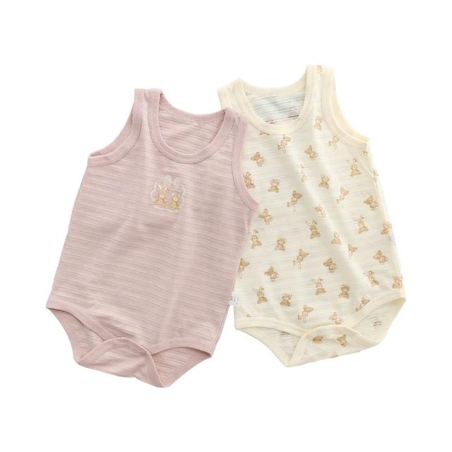 JoyBaby日系純棉無袖包屁衣 2入寶寶純棉連身衣 春夏肩扣無袖睡衣 無袖包屁衣
