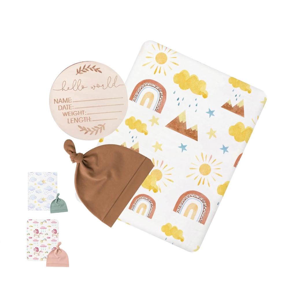 JoyBaby襁褓包巾3件組 薄棉春夏透氣包巾 新生兒包巾 胎帽 舒眠包緊緊包巾 襁褓巾