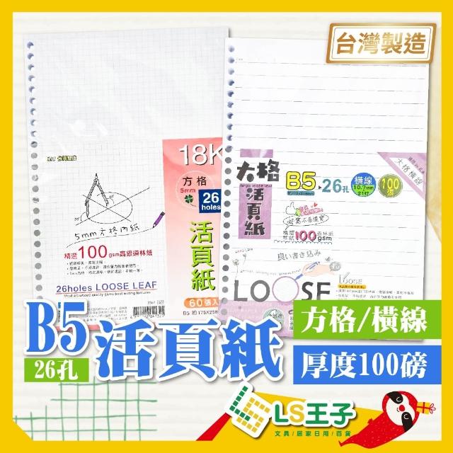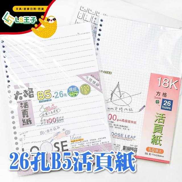 巨匠文具 26孔夾 B5 活頁內紙 100磅 方格/橫線 26孔夾 B5活頁內紙 活頁紙