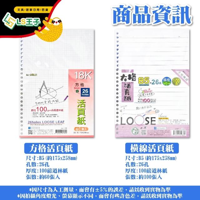 巨匠文具 26孔夾 B5 活頁內紙 100磅 方格/橫線 26孔夾 B5活頁內紙 活頁紙