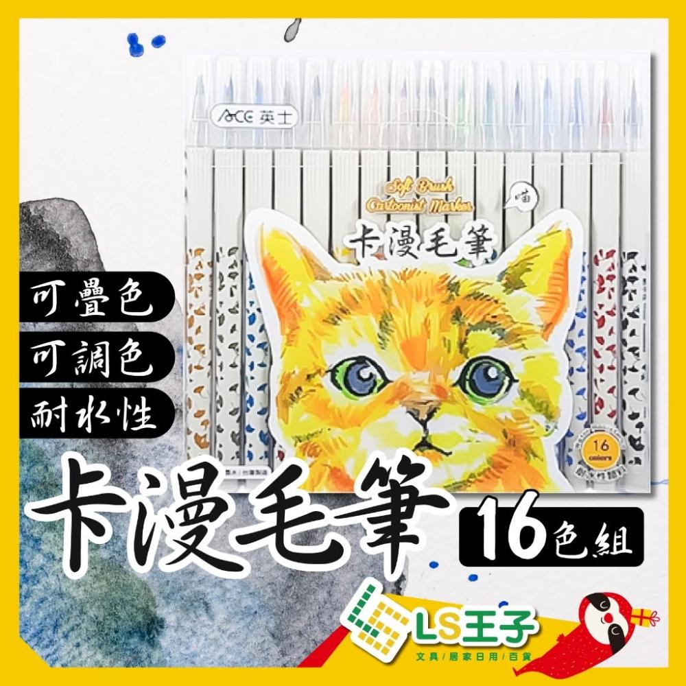 ACE 英士牌卡漫毛筆 16色/套組 彩繪毛筆 耐水毛筆 漫畫毛筆 書法毛筆 毛筆筆刷 多色毛筆 線條描繪筆
