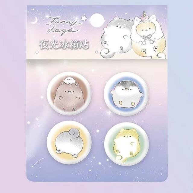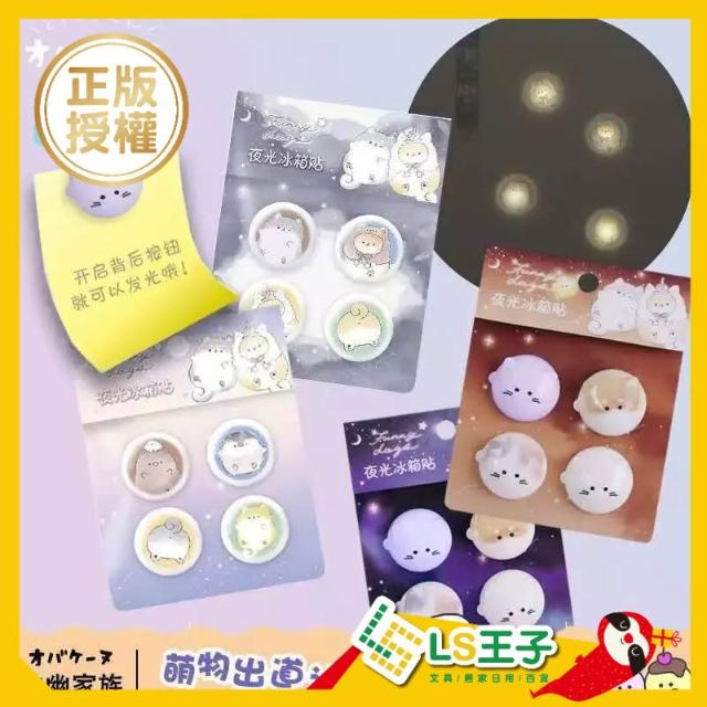 幽幽家族 夜光冰箱貼 隨機出貨4入組 冰箱磁貼 磁鐵 可愛磁鐵 裝飾磁貼 卡通磁鐵 創意冰箱貼 JP34478