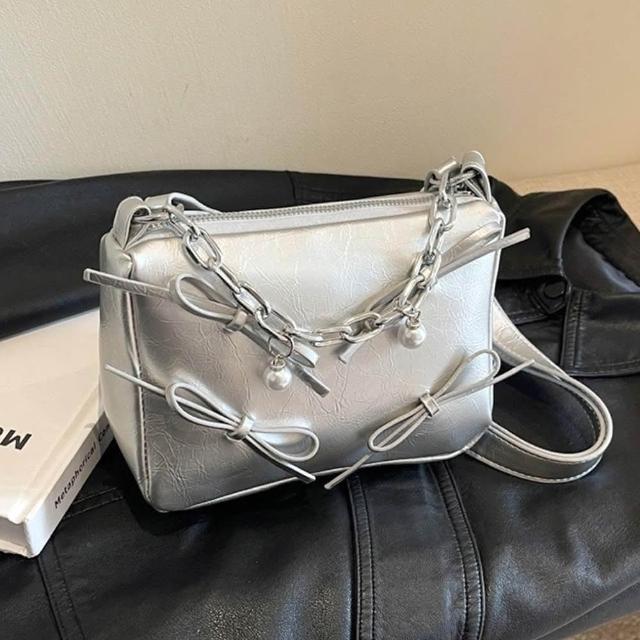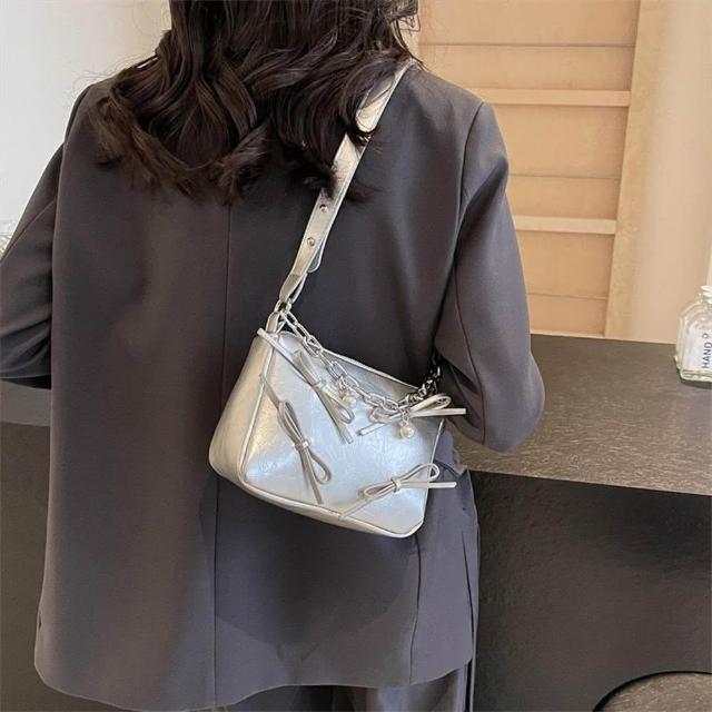 KEDDY銀色包包-斜背托特包-蝴蝶結包包-小方包-包包-斜背包-肩背包-托特包-韓國包包-女生禮物