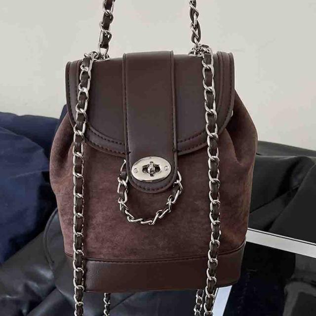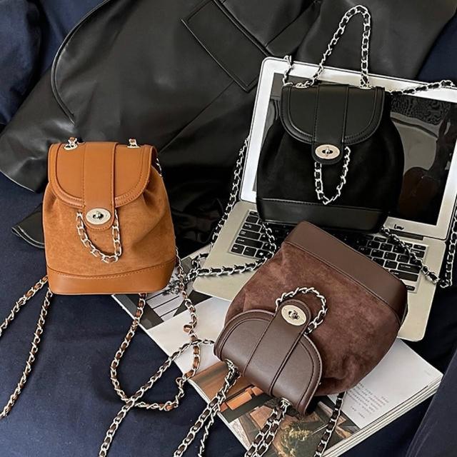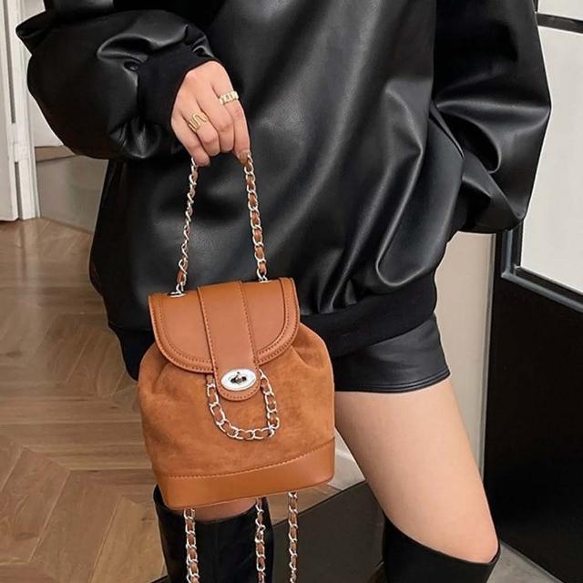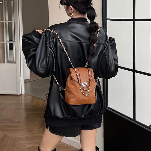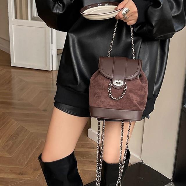 KEDDY包包 水桶後背包 小背包 小香風包包 磨砂皮包包 美拉德包包 復古後背包 小水桶包 鏈條肩背包 水桶包 女生禮物 642