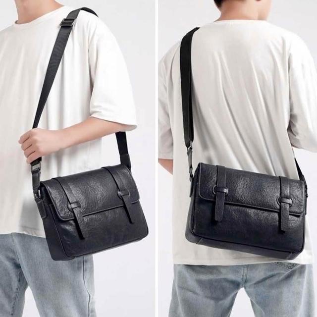 KEDDY大容量斜背包-郵差包-復古郵差包-真皮郵差包-黑色斜背包-復古牛皮男包-送男生-真皮包包