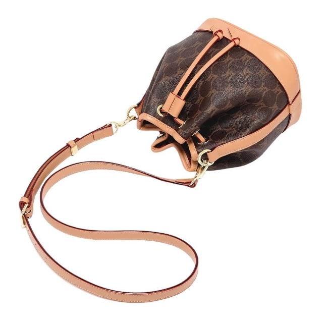 KEDDY斜背水桶包-包包女-老花包包-可愛包包-小包包-手提水桶包-攜便包-皮革包包-棕色包包-女生禮物-手提包-送禮