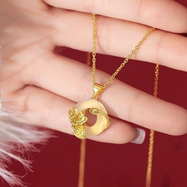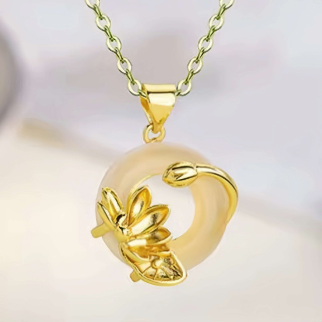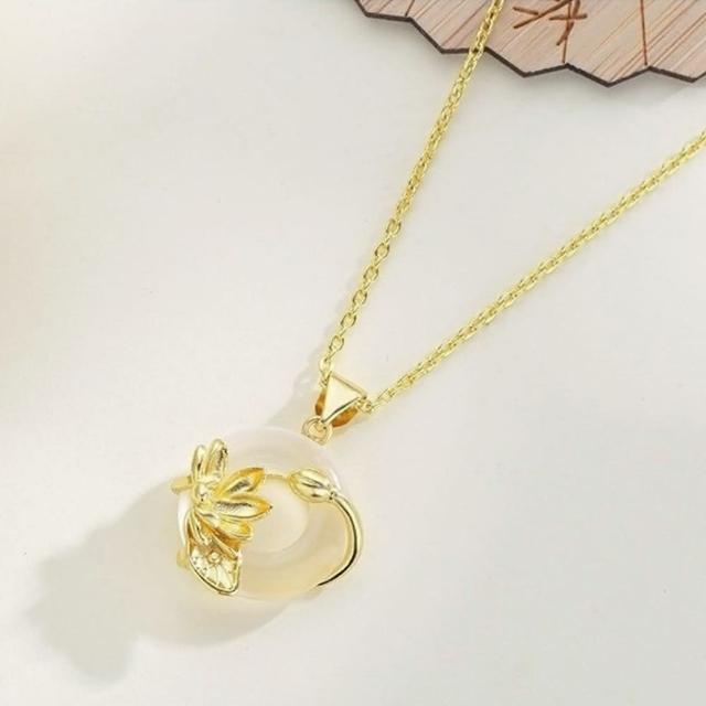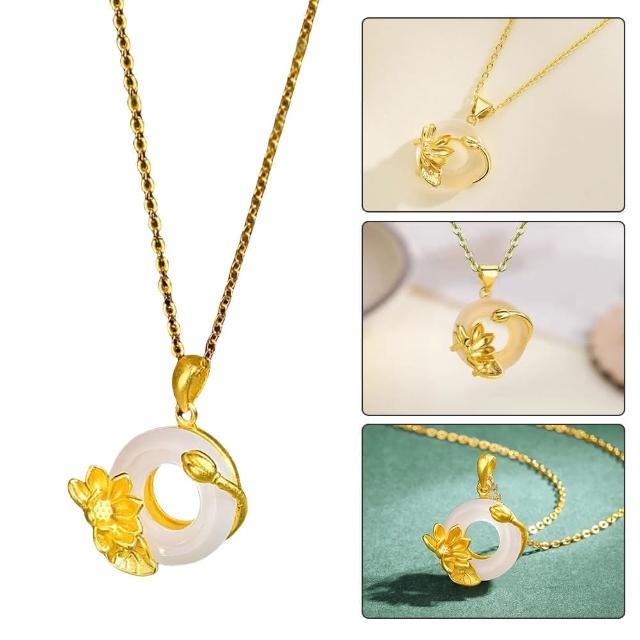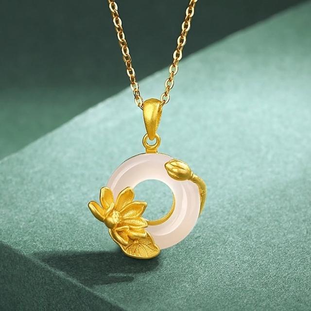 KEDDY白玉髓項鍊-平安扣項鍊-金項鍊-玉項鍊-荷花吊墜-純銀項鍊-玉飾品-鎖骨鍊-玉石項鍊-禮物-保平安-新中式
