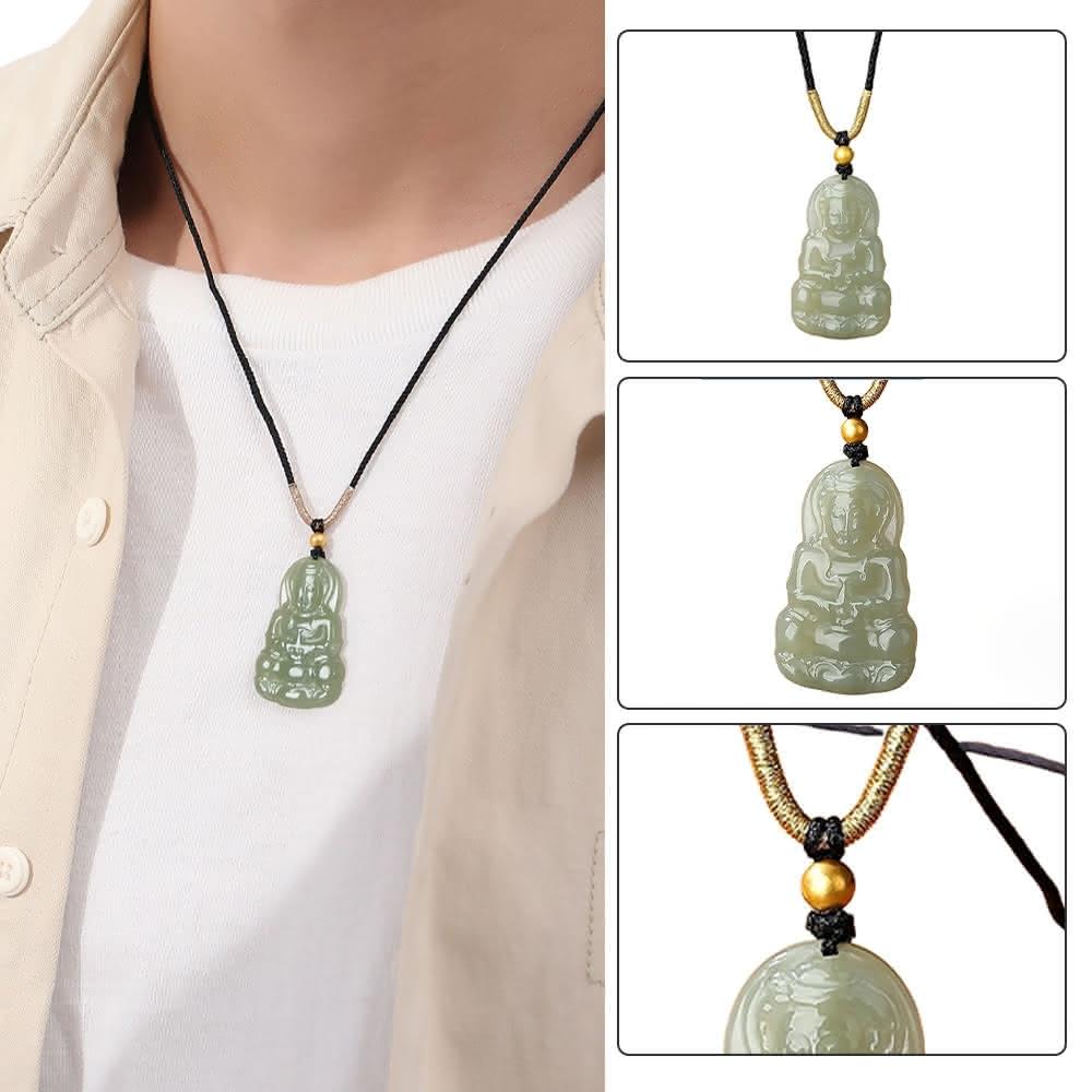 KEDDY玉觀音項鍊-編織繩項鍊-觀音吊墜-18k金項鍊-送禮-保平安-避邪項鍊-項鍊-和田玉項鍊-氣質項鍊