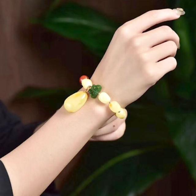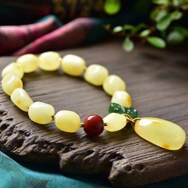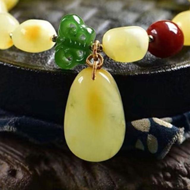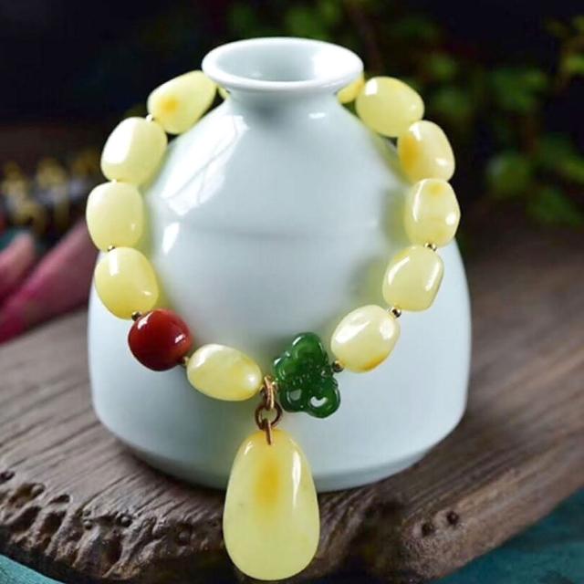 KEDDY蜜蠟碧玉手串-碧玉手鍊-吊墜手鍊-玉手鍊-天然蜜蠟-黃蜜蠟手串-飾品-南紅手串-禮物-手串-手鍊