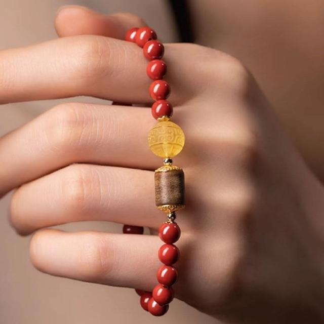 KEDDY硃砂手鍊-蜜蠟手串-沉香木手串-蜜蠟迴紋珠-串珠手鍊-紅色手鍊-送禮-中國風-手串-手鍊-手環