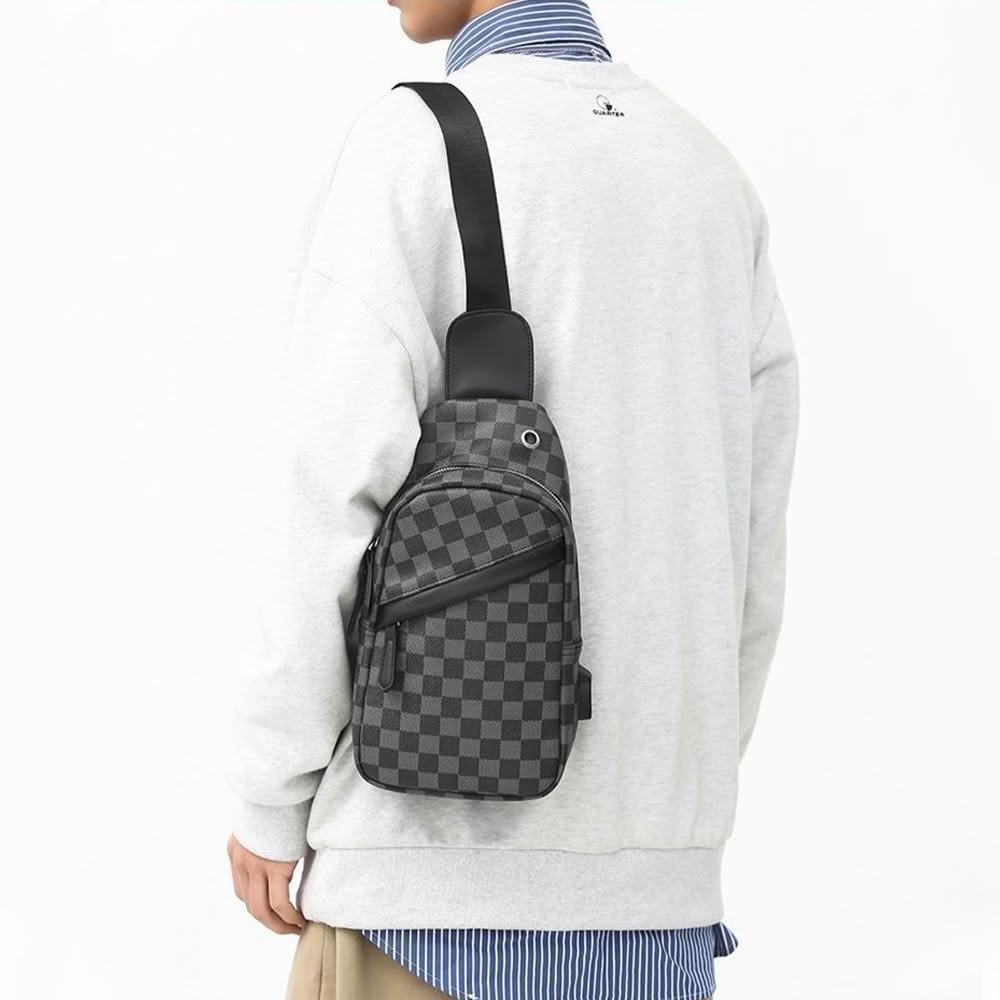 KEDDY格子包包-耐髒耐磨-黑色包包-百搭包包-男女包包-格紋包包-龐克包包-棋盤格包包-包包-胸包-斜背包-男生禮物