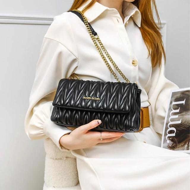 KEDDY腋下包-鏈條包-單肩包-包包-皺褶包-斜背包-小方包-包包女-女生包包-高級感-韓系包包-斜肩包-軟皮包-肩包