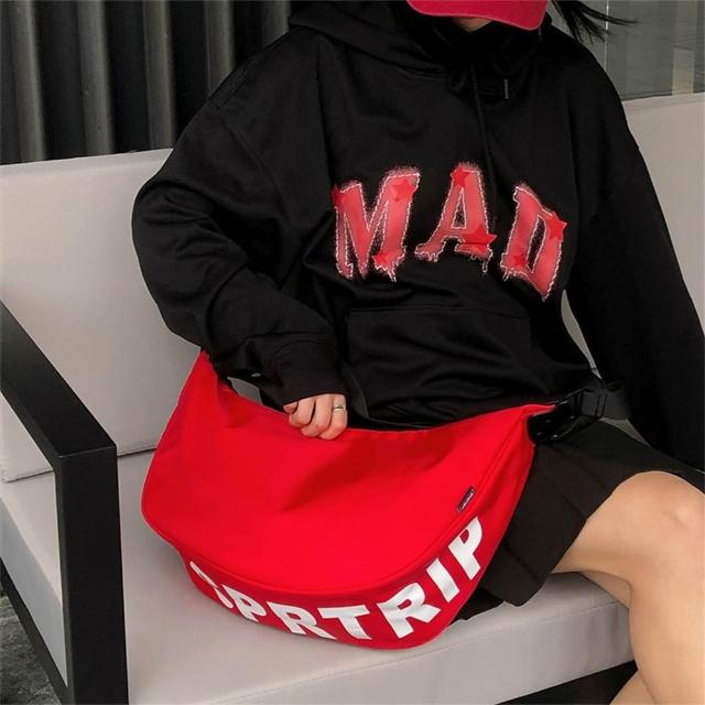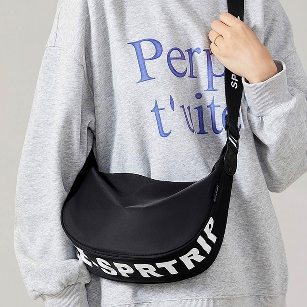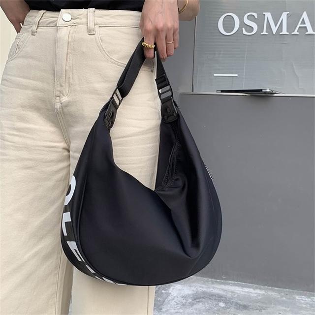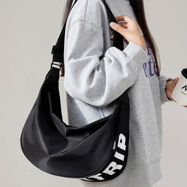 KEDDY側背包-簡約字母-牛津布-半月包-水餃包-寬肩帶-大容量包包-包包-單肩包-斜背包-女生包包-包包女-新月包